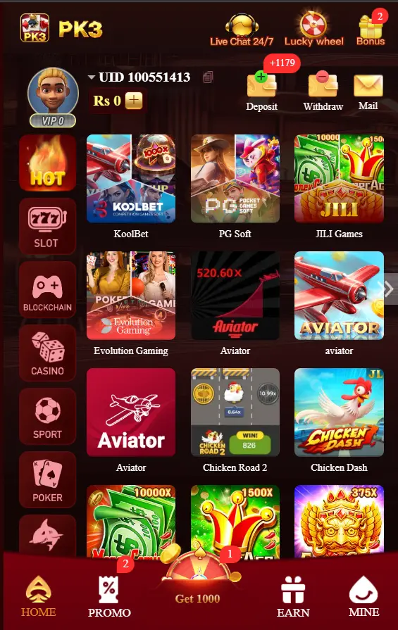 PK3 is an online gaming platform which provides various kind of mini games like color prediction game, number games and casino like games. These games are played at a minimal cost and players are rewarded depending on their predictions or playing ability.